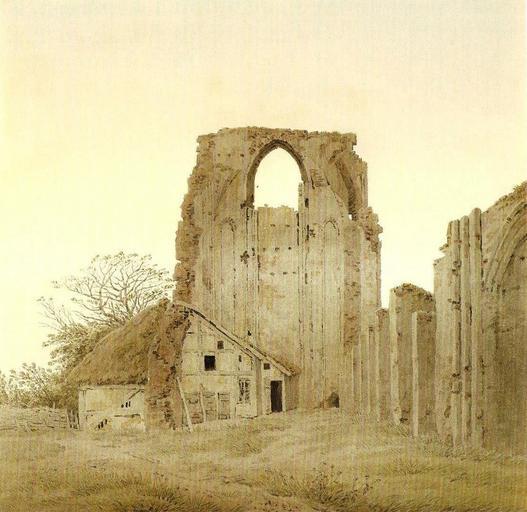 Keywords: Chor der Runie Eldena.jpg de Die Abtei Eldena bei Greifswald 17 März 1836 Aquarell 22 6 x 23 6 cm 1836-03-17 Staatliche Kunstsammlung Dresden Kupferstichkabinett Creator Caspar David Friedrich PD-old-100 Uploaded with UploadWizard Kloster Eldena by Caspar David Friedrich |