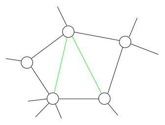 Keywords: Chordal-graph.svg A cycle black with two chords green As for this part the graph is chordal Note that both chords are necessary if one is removed the other green edge with three black edges would form a cycle of four edges with no chord 2006-02-16 own assumed Tizio undirected planar graphs Chordal graph |