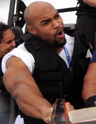 Keywords: Chris Hope-Feb 4 09-090204-N-9758L-135.jpg en Tennessee Titans player Chris Hope shouts with excitement while making a sharp turn during a rigid hull inflatable boat tour with Sailors assigned to Afloat Training Group Middle Pacific ATG MIDPAC as part of a tour of ATG MIDPAC headquarters at historic Ford Island Eight NFL players received tours of Pearl Harbor including tours of the Pearl Harbor-based guided-missile destroyer USS Chafee DDG 90 and the Sea-Based X-band Radar http //www navy mil/view_image asp id 68613 Mass Communication Specialist 2nd Class Michael A Lantron 2009-02-04 Cropped picture to focus on Hope Blueag9 PD-USGov-Military-Navy Chris Hope |