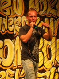 Keywords: Chris Kanik.jpg en Chris Kanik entertains an audience on his improv tour Own Bobsbighat date Comedians from the United States