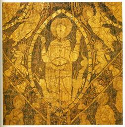 Keywords: Christ in the axis of the coronation pall.jpg author 1031 textile embroidery Institution Hungarian National Museum Budapest object history credit line accession number own scanned by Szilas from A magyar Szent Korona by Tóth Endre Szelényi Károly Kossuth 2000 Budapest PD-old-100 Coronation pall of Hungary |