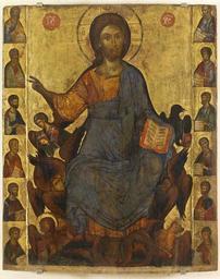 View Original:Christ_in_glory_with_apostles_(14th_c.,_Constantinople).jpg (2608x3317)
