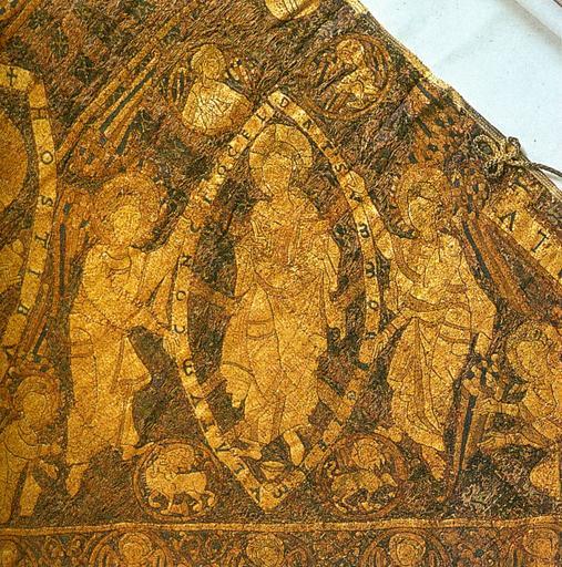 Keywords: Christ on the coronation pall.jpg author 1031 textile embroidery Institution Hungarian National Museum Budapest object history credit line accession number own scanned by Szilas from A magyar Szent Korona by Tóth Endre Szelényi Károly Kossuth 2000 Budapest PD-old-100 Coronation pall of Hungary |