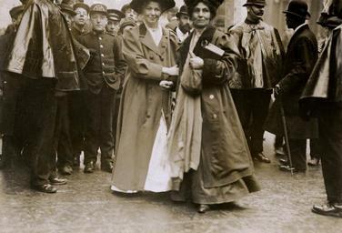 Keywords: the women's library thewomenslibrary lse library lselibrary suffrage suffragette uk christabel pankhurst christabelpankhurst emmeline pankhurst emmelinepankhurst policemen police politics hires 7JCC/O/02/120 Photograph, printed, paper, monochrome, Emmeline and Christabel Pankhurst standing together in the street, in front of a crowd of men including several policemen; printed inscription on reverse 'This photograph is copyright and must not be published in any form except at the ordinary fee of 10/6. Illustrations Bureau, 12 Whitefriars St, EC' 7JCC/O/02/120 Photograph, printed, paper, monochrome, Emmeline and Christabel Pankhurst standing together in the street, in front of a crowd of men including several policemen; printed inscription on reverse 'This photograph is copyright and must not be published in any form except at the ordinary fee of 10/6. Illustrations Bureau, 12 Whitefriars St, EC' |