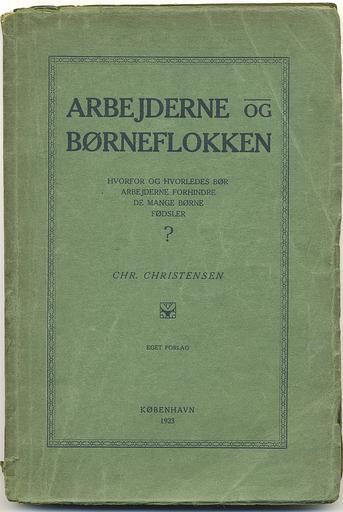 Keywords: Christian Christensen Bogomslag Arbejderne og Børneflokken. 1910..jpg da Dansk revolutionær syndikalist Christensen Christensen 12 1 1882-10 6 1960 første bog Arbejderne og Børneflokken 1910 Kampskrift for Den seksuelle frigørelse og børnebegrænsning Bogomslag femte oplag 1923 på eget forlag Udgivelsen er ikke anført nogen form for copyright eller anden form for ophavsret en Book cover The danish revolutionary syndicalist Christensen Christensen 12 1 1882-10 6 1960 Book title The workeres and the children crowd free translation On photo 5 edition 1923 own editorial Very early 1910 publication in favor of Sexual revolution and birth control 2013-07-31 13 44 26 Scanning of book cover Christian Christensen own editorial 1910 The publication carry no indication of copyright or any other restrictions PD-Denmark50 PD-1996 Denmark Published 1923 expired 1993 Human sexuality Birth control movement Anarchism Books from Denmark Communism Contraception