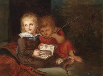 Keywords: Christian Leberecht Vogel Die Söhne des Künstlers.jpg Painting Creator Christian Leberecht Vogel der spätere Maler Carl Christian Vogel und der jüngere Sohn Friedrich Vogel; mit einem Bilderbuch; eine von angeblich 18 eigenhändigen Versionen c 1793 Oil on canvas cm 77 100 unknown http //www dorotheum com other versions PD-old-100 DEFAULTSORT 1793c; Vogel Images from Dorotheum Christian Leberecht Vogel 18th-century portrait paintings location missing Carl Christian Vogel von Vogelstein 1793 oil on canvas paintings 1793 portrait paintings Male 18th-century oil portraits of boys at full length Paintings of reading boys Portrait paintings with books Portraits of artist's children Portraits of brothers Whips in art Two boys in art |
