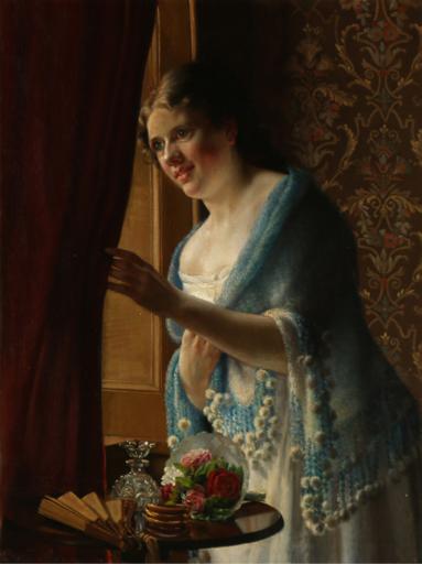Keywords: Christian Pram-Henningsen - En ung kvinde kigger forventningsfuldt ud ad et vindue - 1879.png Christian Pram-Henningsen 1846-1892 1879 technique oil canvas cm 87 66 object history Auctioned at Bruun-Rasmussen December 2016 exhibition history credit line Pram-Henningsen 79 signature and date accession number http //www bruun-rasmussen dk/search do iid 300893944 lang en cid 453 mode detail bruun-rasmussen dk PD-old-auto-1923 1892 Christian Pram-Henningsen 1879 oil on canvas paintings |