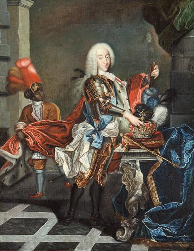 Keywords: Christian VI med tjener.jpg 1half otherdate century 18 Oil on canvas institution Frederiksborgmuseet object history exhibition history credit line accession number http //www frederiksborgslot dk PD-old-100 DEFAULTSORT 1730 c; Christian VI 18th-century unidentified painters 18th-century portrait paintings in the Frederiksborg Museum Christian VI of Denmark 18th-century portrait paintings not categorised by year Male 18th-century men looking at viewer in art 18th-century oil portraits of standing men at full length wearing armour 18th-century portrait paintings with black slaves Allonge wigs in paintings Blue drapery in portrait paintings Coronation portraits of Denmark Ermine clothing in art Green drapery in portrait paintings Livery clothing Male boots in portrait paintings Portrait paintings of men with crowns on cushions Portraits holding baton Sash of the Order of the Elephant in portrait paintings Tables in portrait paintings Waist sashes in art |
