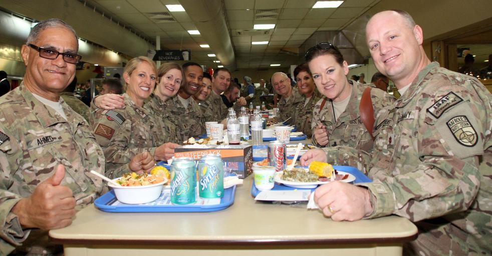 Keywords: Christmas Dinner in Afghanistan 141224-N-JY715-919.jpg en Sailors from the NATO Role 3 Multinational Medical Unit eat Christmas dinner together at Kandahar Airfield Afghanistan 2014-12-24 Lt Cmdr Jesse Ehrenfeld https //www dvidshub net/image/1712076 141224-N-JY715-919 2014-12-31 14 07 KANDAHAR AIRFIELD AF PD-USGov-Military-Navy Kandahar International Airport Images from DoD uploaded by Fæ |