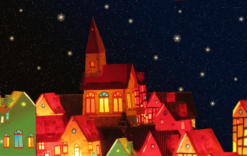 Keywords: christmas market christmas light decoration christmas time homes building starry sky snow