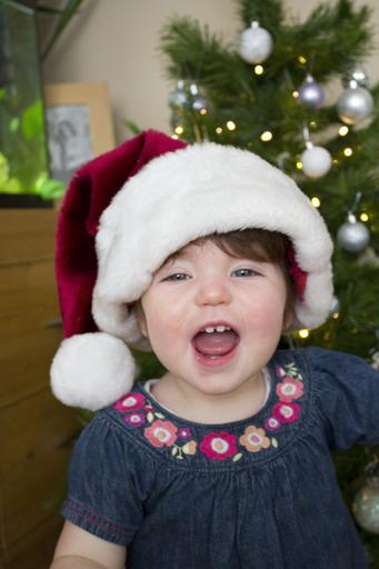 Keywords: christmas santa hat happy girl child young seasonal decoration december red xmas celebration cute