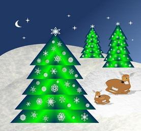 | Keywords: christmas trees snow snowflakes deer fawn doe sky night moon stars scene holiday ornaments decoration cold winter december xmas green icon symbols shiny festive celebrate graphic design peaceful baby mom mother twilight season seasonal creative artistic flakes tranquil tranquility colorful |