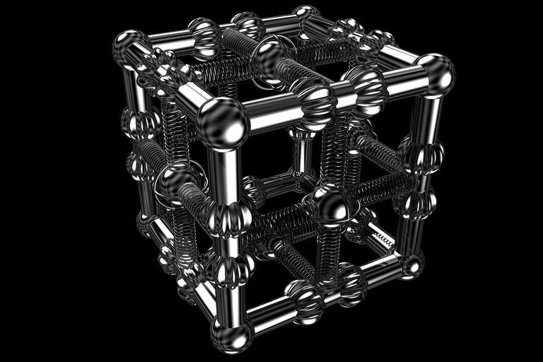 Keywords: chrome metal cubic metallic connection bar ball geometry