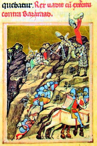 Keywords: Chronicon Pictum P0143 A posadai csata1.JPG author The w Battle of Posada in the The w Battle of Posada November 9-12 1330 in the Chronicon Pictum The Basarab I of Wallachia 's army ambushed Charles Robert of Anjou king of Hungary and his 30 000-strong invading army The Vlach Romanian warriors rolled down rocks over the cliff edges in a place where the Hungarian mounted knights could not escape from them nor climb the heights to dislodge the attackers Huida de Carlos Roberto en la batalla de Posada tras ser derrotado por el Príncipe de Valaquia Crónica Ilustrada húngara La bataille de Posada 1330 à la suite de laquelle la Hongrie dut reconnaître l'indépendance de la Valachie Chronique enluminée de Vienne bataille de Posada La belle image L'armée du roi de Hongrie Charles d'Anjou prise dans une embuscade tendue par Basarab Ier de Valachie Enluminure du Chronicon Pictum ציור בכרוניקה המצוירת בווינה ע קרב פוסאדה Bečka oslikana kronika Bitka kod Posade A posadai csata A posadai csata a Képes krónikában Csór Tamás átadja lovát Károly Róbert királynak サ の戦い 14世 ハンガリーの年代記クロニコン・ピクトゥムより De Slag bij Posada Chronicon Pictum Vindobonense - Slag bij Posada Bitwa pod Posadą Średniowieczne przedstawienie bitwy pod Posadą Armia Karola Roberta zaskoczona w wąwozie pod Posadą Carlos I da Hungria Bătălia de la Posada din 1330 în Cronica pictată de la Viena Potrivit ipotezei lui Matei Cazacu Basarab ar putea fi personajul din stânga cu un bolovan în mâini Битка код Посада 1320 1360 Viyana Kroniklerinde Posada Savaşı Битва п и Посаді 1330 1358 Institution National Széchényi Library accession number 404 object history credit line photo taken by uploader User Csanády Same book <gallery> File Chronicon Pictum P0146 A posadai csata2 JPG Other version of this picture in Chronicon Pictum p 146 </gallery> <gallery> File Viennese Illuminated Chronicle Posada jpg File Battle1330 jpg </gallery> PD-Art-100 Battle of Posada Chronicon Pictum Basarab I of Wallachia in miniature Charles I of Hungary Swords of Hungary Warriors in art Death in paintings Archers in art Bow and arrow in art Equestrian portrait paintings Cavalry of Hungary Medieval miniatures of battles Killing in medieval miniature Swords of Romania |