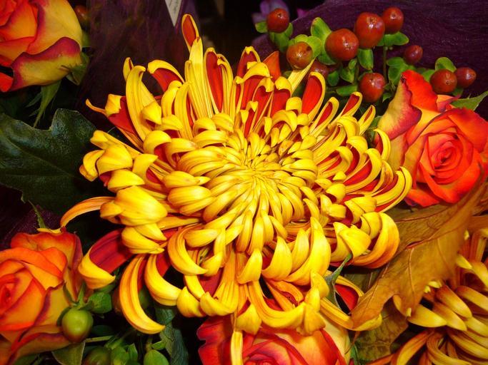 Keywords: chrysanthemum flower yellow floral bloom color blossom flora orange bouquet