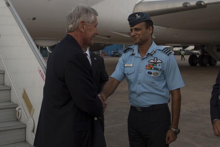 | Keywords: Chuck Hagel greeted by officials at IGI Airport 1.jpg New Delhi India Aug 7 2014 -- Secretary of Defense Chuck Hagel is greeted by senior U S and Indian Defense officials at Indira Gandhi International Airport in New Delhi India August 7 2014 DoD photo by Petty Officer 2nd Class Sean Hurt/Released https //www flickr com/photos/secdef/14853262901/ 140807-N-AF077-221 2014-08-07 09 40 https //www flickr com/people/68842444 N03 Ash Carter PD-USGov Secretary of Defense https //flickr com/photos/68842444 N03/14853262901 2015-12-11 09 56 28 United States Government Work Chuck Hagel in India People of the Indian Air Force 2014 at Indira Gandhi International Airport |