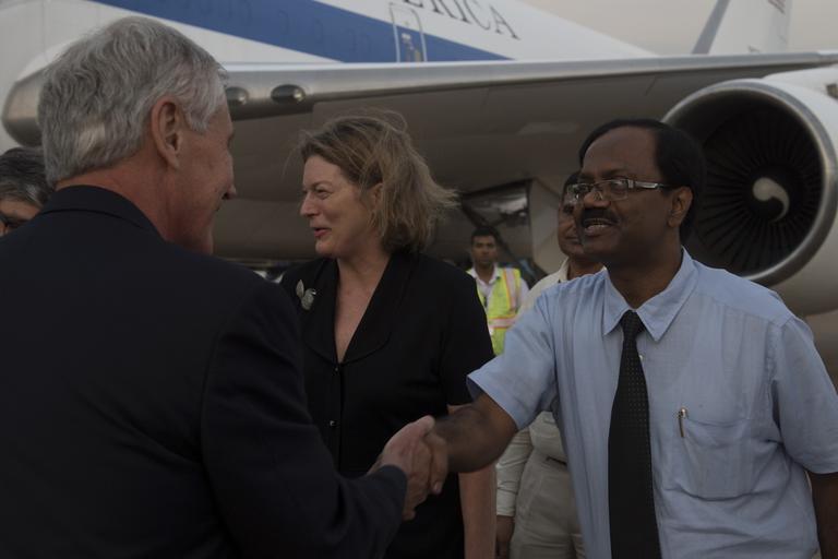 | Keywords: Chuck Hagel greeted by officials at IGI Airport 4.jpg New Delhi India Aug 7 2014 -- Secretary of Defense Chuck Hagel is greeted by senior U S and Indian Defense officials at Indira Gandhi International Airport in New Delhi India August 7 2014 DoD photo by Petty Officer 2nd Class Sean Hurt/Released https //www flickr com/photos/secdef/14856309145/ 140807-N-AF077-238 2014-08-07 09 40 https //www flickr com/people/68842444 N03 Ash Carter PD-USGov Secretary of Defense https //flickr com/photos/68842444 N03/14856309145 2015-12-11 09 50 36 United States Government Work Chuck Hagel in India 2014 at Indira Gandhi International Airport |