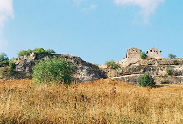 Keywords: Chufut Kale 1.jpg An upward view of the fortress and the kenassas in Çufut Qale Bakhchisaray Crimea Own 2007-08 Chapultepec Çufut Qale