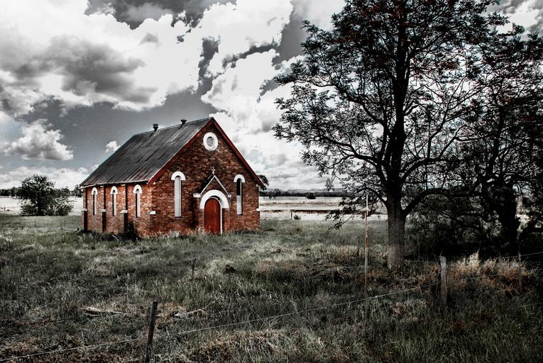 Keywords: church abandoned worship brick clouds religious