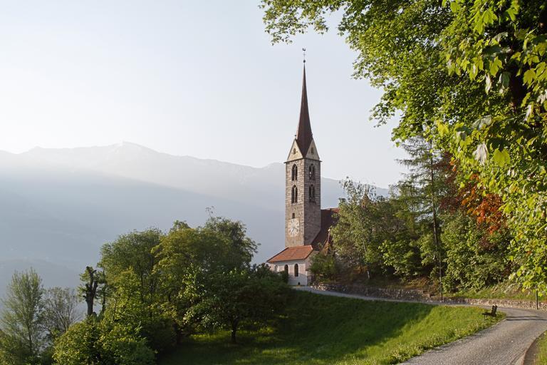 Keywords: church baroque christianity catholic religion hill landscape south tyrol steeple building
