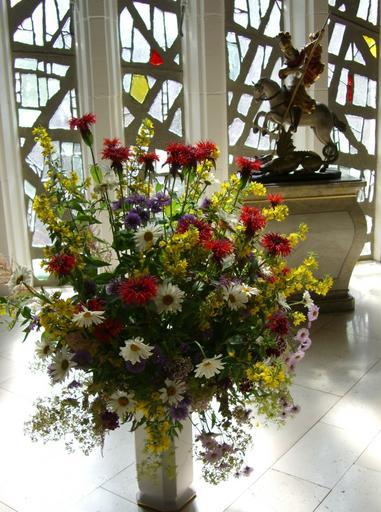 Keywords: church jewelry bouquet colorful glass concrete wall thick glass window fields stele with st george sculpture church rear tender frisch fromm cheerful free