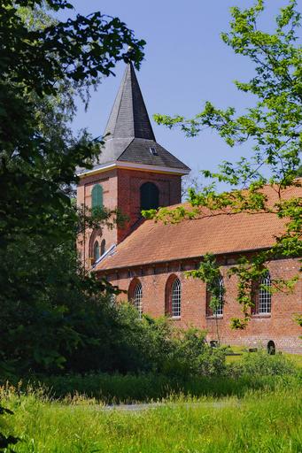 Keywords: church landscape idyllic early summer green trees