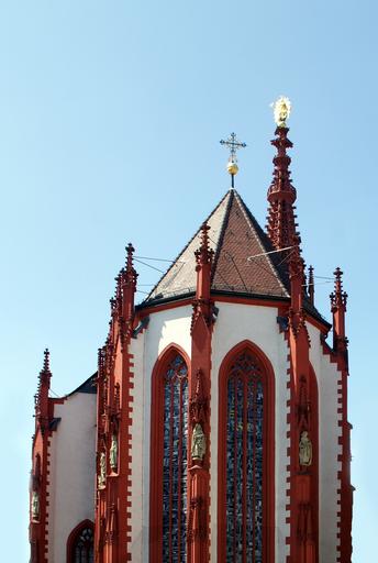 Keywords: church mary's chapel würzburg historically section middle ages swiss francs christian bavaria gothic market towers cross sky blue religion