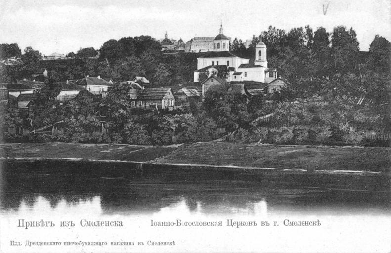 Keywords: Church of St. John the Divine in Smolensk 2.jpg en Church of St John the Divine in Smolensk on the other bank of the Dnieper ru Це ковь Иоанна Богослова в Смоленске с д угого бе ега Днеп а О игинальная отк ытка е установлены before 1917 года PD-RusEmpire 20th-century postcards of Russia Postcards of Smolensk Saint John the Evangelist Church Smolensk