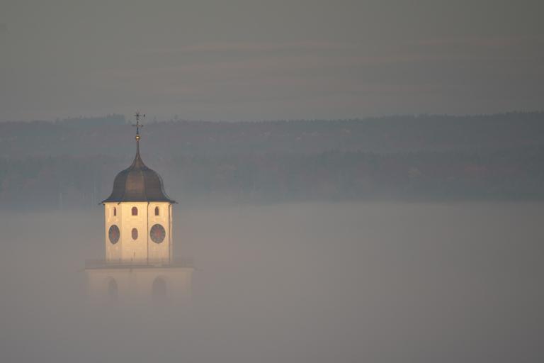 Keywords: church sunrise sunset fog space sky hill prayer jesus resurrection mood cross morgenrot christianity building landscape faith steeple church clock