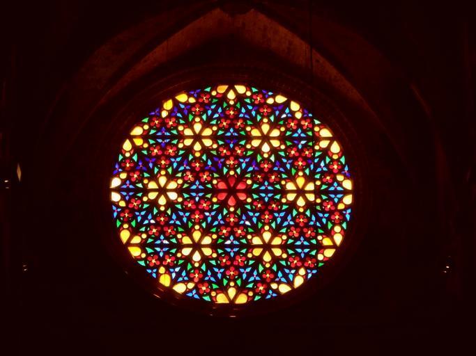 Keywords: church window colorful church glass window glass window color believe colorful glass religion christianity pattern light art rosette stained glass cathedral mallorca