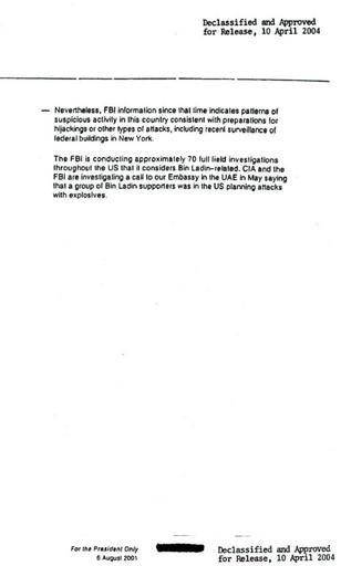 | Keywords: CIA Memo2.jpg Page 2 of 2 from a CIA memo dated August 2001 concerning a possible attack by Bin Laden on the United States of America Original text en wikipedia by en User Andrei Stroe using http //tools wikimedia de/~magnus/commonshelper php CommonsHelper <br/> original text 1 National Security Archives 6 August 2001<br/> first version ; last version Unknown CIA Wiki1609 wikipedia en Later version s were uploaded by Noahcs at http //en wikipedia org en wikipedia Wiki1609 wikipedia en Original text PD-USGOV-CIA <br/> original text 1 Declassified by the US Government on 10 April 2004 60px page 1 of 2 Original upload log en wikisource Billinghurst CommonsHelper en wikisource Memo2 jpg 2006-07-10 01 21 Sherurcij 1120×1859× 161485 bytes <nowiki></nowiki> CIA documents Secrecy Documents of the government of the United States Osama bin Laden PD-USGov |