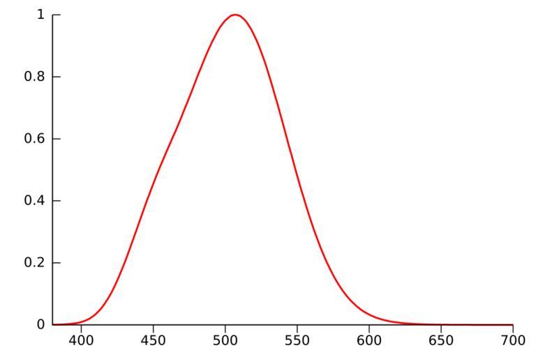 Keywords: CIE 1951 scotopic luminosity function.svg en A graph of the CIE Scotopic luminosity curve 1951 for wavelengths of light from 380nm to 700nm Data from http //www cvrl org/database/text/lum/scvl htm Designed to match original bitmap version Image Scotopic1 png by User en Dicklyon Gnuplot vector version by User Qef 2008-07-04 Original bitmap version Image Scotopic1 png n set terminal svg font Bitstream Vera Sans 12 size 600 400 set output CIE_1951_scotopic_luminosity_function svg set xrange 380 700 set yrange 0 1 set xtics axis nomirror set ytics axis nomirror set key off set border 3 plot scvle_1 txt using 1 2 \ with line linetype rgbcolor blue linewidth 2 The source data file scvle_1 txt can be downloaded from here it's the high-resolution data for energy on a linear scale against wavelength http //www cvrl org/database/text/lum/scvl htm Qef Luminosity function CIE 1951 Valid SVG created with Gnuplot code |
