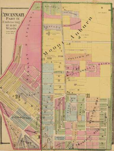 Keywords: Cincinnati part IX embracing 11th & 19th wards. (1869).png en wikipedia 2010 February 5 Author Harrison Robert H ; Titus Clarence O Date 1869 Short Title Cincinnati 9 wards 11 19 Publisher Philadelphia C O Titus Type Atlas Map Obj Height cm 46 Obj Width cm 35 Scale 1 3 600 Note Two hand col lithographed maps on 1 sheet Shows numbers tracts owners of large parcels major buildings etc State/Province Ohio City Cincinnati Ohio ; Mount Auburn Cincinnati Ohio Full Title Cincinnati part IX embracing 11th 19th wards 1869 List No 3748 036 Page No 105 Series No 40 Engraver or Printer Worley Bracher ; Bourquin F Frederick b 1808 Publication Author Harrison Robert H ; Titus Clarence O Pub Date 1869 Pub Title Titus' atlas of Hamilton Co Ohio from actual surveys by R H Harrison C E Assisted by Geo E Warner A Leavenworth J E Sherman L C Warner R T Higgins to which is added a township map of the state of Ohio Also an outline railroad map of the United States Published by C O Titus 320 Chestnut St Philadelphia 1869 Assistants T F Pratt Cyrus Haven H Turner G P Stevenson J H Hall D B Titus G M Stevenson Engd by Worley Bracher 320 Chestnut St Phila Printed by F Bourquin 320 Chestnut St Phila Entered 1869 by C O Titus Pennsylvania Pub Reference LeGear Atlases of the United States 2803; Phillips 2381; Phillips Maps of America p 315; Checklist of printed maps of the Middle West to 1900 2-1047 Pub Note See note field above Pub List No 3748 000 Pub Type County Atlas Pub Maps 39 Pub Height cm 48 Pub Width cm 40 Image No 3748036 Institution Rumsey Collection Ownership Statement Copyright 2007 This historical cartographic image is part of the David Rumsey Historical Map Collection a large collection of online antique rare old and historical maps atlases globes charts and other cartographic items External links http //www davidrumsey com/directory/where/Mount+Auburn++Cincinnati++Ohio+/ Historic Maps of Mount Auburn Cincinnati Ohio Transferred from http //en wikipedia org en wikipedia; transferred to Commons by User IngerAlHaosului using http //tools wikimedia de/~magnus/commonshelper php CommonsHelper 2007-06-21 Original uploader was Paultyng at http //en wikipedia org en wikipedia PD-old Original upload log page en wikipedia Cincinnati_part_IX_embracing_11th_ 26_19th_wards _ 281869 29 png 2007-06-21 21 44 Paultyng 1027×1363× 3201403 bytes <nowiki></nowiki> 2007-06-21 21 39 Paultyng 1128×1406× 3311721 bytes <nowiki></nowiki> 2007-06-21 19 47 Paultyng 1128×1406× 3311721 bytes <nowiki>Author Harrison Robert H ; Titus Clarence O Date 1869 Short Title Cincinnati 9 wards 11 19 Publisher Philadelphia C O Titus Type Atlas Map Obj Height cm 46 Obj Width cm 35 Scale 1 3 600 Note Two hand col lithographed maps on 1 sheet S</nowiki> Maps of Cincinnati Ohio Neighborhoods in Cincinnati Ohio Cincinnati Ohio in the 1860s Old maps of cities in Ohio 1869 maps |