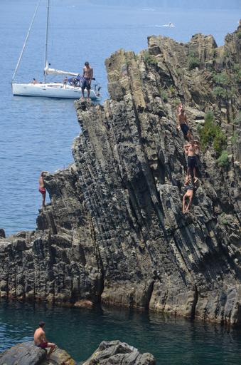 Keywords: cinque terre italy rock jump swim summer mar young people fun
