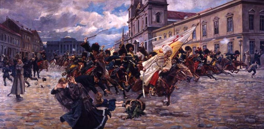 Keywords: Circassians1891a.jpg Artwork Creator Wojciech Kossak en Reminiscence of Childhood ”Charge of the Circassians down Krakowskie PrzedmieÅ›cie 1891 pl Wspomnienie z dzieciÅ„stwa “ Szarża Czerkiesów po Krakowskim PrzedmieÅ›ciu 1891 1891 oil canvas The Polish Museum of America Chicago accession number object history credit line http //www polishmuseumofamerica org/v4/PolishVersion/MPAMuzeumKolekcjaSztuki htm www polishmuseumofamerica org See below PD-old-auto-1923 1942 Uploaded with UploadWizard Paintings by Wojciech Kossak |