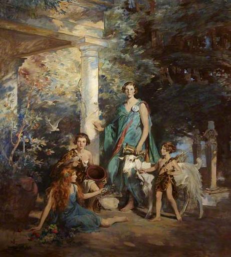 Keywords: Circe and the Sirens,' A Group Portrait of the Honourable Edith Chaplin (1878–1959), Marchioness of Londonderry, and Her Three Youngest Daughters.jpeg en Portrait of Circe and the Sirens' A Group Portrait of the Honourable Edith Chaplin 1878 “1959 Marchioness of Londonderry and Her Three Youngest Daughters Lady Margaret Frances Anne Vane-Tempest-Stewart 1910 “1966 Lady Helen Maglona Vane-Tempest-Stewart 1911 Oil on canvas by the artist Charles Edmund Brock d 1938 327 5 cm x 274 5 cm Courtesy of the collection of the National Trust 2012-05-14 17 22 00 BBC Paintings http //www bbc co uk/arts/yourpaintings/paintings/circe-and-the-sirens-a-group-portrait-of-the-honourable-edith-c Charles Edmund Brock d 1938 PD-Art Uploaded with UploadWizard Group portraits Charles Edmund Brock Charles Vane-Tempest-Stewart 7th Marquess of Londonderry |