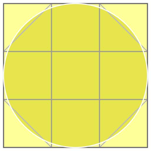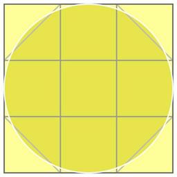 Keywords: Circle in square Egyptian.svg en A square with inscribed circle and subdivided into parts by a grid illustrating an ancient method of calculating a circular area by approximation As demonstrated in the Rhind Papyrus book II problem 48 copied by Ahmes/Ahmose around 1550 BC The area of a circle is estimated as roughly 7/9 of a square whose side equals the circle's diameter i e pi is approximated by 28/9 3 111 de Ein Kreis der einem Quadrat eingeschrieben ist das dreiteilend durch ein Gitter zerlegt wird Zur Illustration der näherungsweisen Berechnung einer Kreisfläche nach der im Papyrus Rhind überlieferten Methode als Kopie durch Ahmes/Ahmose etwa 1550 v Chr Die Fläche eines Kreises wird damit auf ungefähr 7/9 der eines Quadrats geschätzt dessen Seitenlänge gleich dem Kreisdurchmesser ist; die Zahl pi wird hierbei angenähert durch 28/9 3 111 own R elation 2011-01-21 Other fields a text editor 43737 487 d e Cc-zero Circle area Rhind Mathematical Papyrus SVG Ancient Egypt |