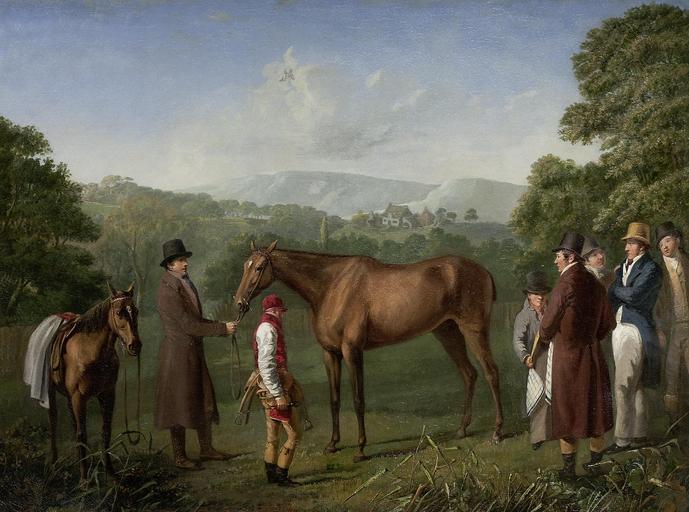 Keywords: Circle of Jacques-Laurent Agasse - A bay racehorse held by a trainer in an extensive landscape.jpg Circle of oil canvas cm 74 99 5 object history Robert C de Grey Vyner Newby Hall Yorkshire and by descent to Robin Compton; Christie's London 23 July 1978 lot 62 as by 'Ben Marshall' <br/>Anon sale Christie's London 19 July 1985 lot 13 as 'Attributed to Abraham Cooper' where acquired by the late owner <br/>Sale Christie's London 21 May 2004 lot 81 credit line accession number 1 http //www bonhams com/auctions/19571/lot/14/ Bonhams London 25 Jan 2012 lot 14<br/>2 http //www bonhams com/auctions/20221/lot/241/ Bonhams Edinburgh 21 Jun 2012 lot 241 christies online 4281412 PD-old-100 DEFAULTSORT Jacques-Laurent Agasse - A bay racehorse held by a trainer in an extensive landscape Jacques Laurent Agasse 19th-century genre paintings Paintings of horses Images from Bonhams 19th-century oil paintings |