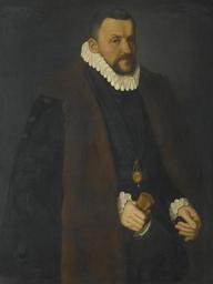 Keywords: Circle of Nicholaes Neufchatel Portrait of a Nobleman 1581.jpg Portrait of a Nobleman wearing a Salvator Mundi medallion charged on the sitter's ring with the coat-of-arms of the Grabow of Brandenburg 1581 Technique oil canvas in 41 125 33 5 object history credit line 1581 date top left accession number http //www sothebys com/en/auctions/ecatalogue/2015/old-master-british-paintings-l15030/lot 513 html Sotheby's sale L15030 lot 513 PD-old-100 1581 portrait paintings 16th-century oil on canvas paintings Portraits holding gloves Ruffs in art male Nicolas Neufchâtel Male fur clothing in art |