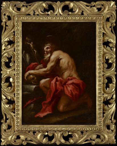 Keywords: Circle of Paolo Pagani - St. Jerome in the Desert - 2009.63 - Minneapolis Institute of Arts.jpg male figure kneeling on one knee with a red drapery across his lap; long brown and white beard and hair; PL hand resting on a skull; PR hand holding a crucifix; faint halo; rather dark image 16 x 11 9/16 in 40 64 x 29 37 cm sight 22 3/4 x 18 1/8 in 57 79 x 46 04 cm outer frame 2009 63 https //api artsmia org/images/107290/6198/large jpg Q1700481 Oil on canvas St Jerome in the Desert https //collections artsmia org/index php page detail id 107290 Q20891781 |