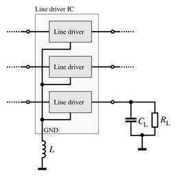 Keywords: Circuit explaining ground bounce.svg de Circuit explaining ground bounce 2012-03-25 own Stündle Inkscape cc-zero Uploaded with UploadWizard IC functional diagrams