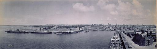 Keywords: melvin vaniman melvin vaniman melvinvaniman photography panorama state library statelibrary circular quay circularquay steamship navigation company steamshipnavigationcompany state library of new south wales statelibraryofnewsouthwales arthur streeton three liners On the left can be seen the then new tram shed on Bennelong Point, which was replaced by the Opera House. Alongside are mail steamers including the Ventura, which brought Vaniman to Australia from Auckland. On the extreme right is the Australian Steamship Navigation Company's building, which still stands between Hickson Road and Circular Quay West. Find more information about the Melvin Vaniman collection of photographic panoramas in the State Library of New South Wales' catalogue: acms.sl.nsw.gov.au/item/itemdetailpaged.aspx?itemid=413018 On the left can be seen the then new tram shed on Bennelong Point, which was replaced by the Opera House. Alongside are mail steamers including the Ventura, which brought Vaniman to Australia from Auckland. On the extreme right is the Australian Steamship Navigation Company's building, which still stands between Hickson Road and Circular Quay West. Find more information about the Melvin Vaniman collection of photographic panoramas in the State Library of New South Wales' catalogue: acms.sl.nsw.gov.au/item/itemdetailpaged.aspx?itemid=413018 |