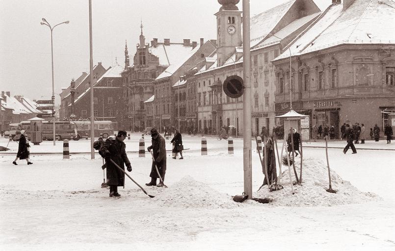 | Keywords: Čiščenje avtobusnega postajališča na Glavnem trgu 1961 (3).jpg Čiščenje avtobusnega postajališča na Glavnem trgu 272541 1961-01-27 creator Dragiša Modrinjak PD-Slovenia 1961 in Slovenia Historical black and white photographs of Maribor Main Square Maribor Maribor Town Hall Snow in Maribor Snowing in Maribor Snow removal in Slovenia Snowy roads in Slovenia Snow-covered roofs in Slovenia Men at work in Maribor Historical images of buses in Maribor Bus stops in Maribor Pedestrians in Maribor Road signs in Maribor No stopping signs in Slovenia Photographs by Dragiša Modrinjak |