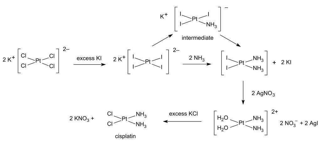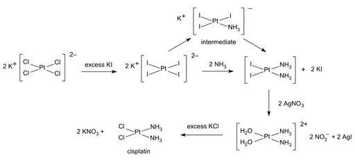 Keywords: Cisplatin synthesis.svg cisplatin cis-diamminedichloroplatinum II based on the commonly used method reported by Dhara in 1969 own layout based on File Cisplatinsynthesis jpg Anypodetos 2011-08-07 BKchem 001 -check Cc-zero Cisplatin Drug syntheses |