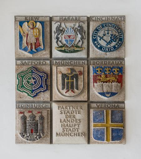 | Keywords: Cities partners Rathaus Munich.jpg fr Les armoiries des villes jumelées entrée de l'Hôtel de Ville Munich Bavière Allemagne en CoAs of Partner cities entrance of the City hall Munich Bavaria Germany 2013-10-21 own Jebulon 48 137462 11 575528 cc-zero Uploaded with UploadWizard Reliefs of coats of arms in Munich Coats of arms of cities Coats of arms of Kiev Coats of arms of Bordeaux Coats of arms of Verona Coats of arms of Munich Castles in heraldry Coats of arms of Edinburgh Reliefs of British coats of arms in foreign countries Sapporo Cincinnati Ohio Interior of New Town Hall Munich Twin town signs Town twinning in Germany Harare Quality images by Jebulon Antelopes in supporters QualityImage |