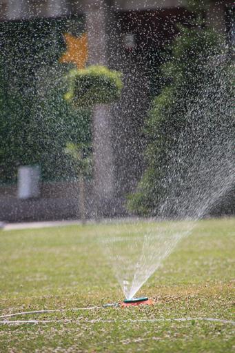 Keywords: city garden grass green heat spraying sprinkler stream swirling water summer