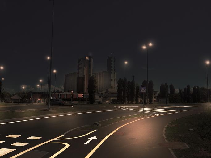 Keywords: city light building road urban night pavement lights