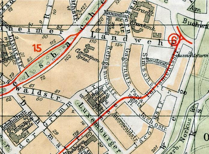 | Keywords: City map crop frankfurt hesse germany ravenstein 1933.png de 1933 Der Stadtplanausschnitt von Frankfurt am Main zeigt die frühere Lage des Clementine Kinderhospitals in der Bornheimer Landwehr 110 Das 10 000 m<sup>2</sup> große ehemalige Parkgrundstück mit Sommerhaus der Freifrau Louise von Rothschild wurde vor dem Zweiten Weltkrieg noch nicht von der Verlängerung der Freiligrathstraße zwischen Wittelsbacherallee und Brüder-Grimm-Straße geteilt en 1933 City map crop of Frankfurt am Main Hesse Germany The crop focusses on the situation of Clementinenspital current Clementine Kinderhospital at Bornheimer Landwehr 110 2012-06-05 http //www imaguncula de/stadtplan-frankfurt-am-main-1928 htm Hans Ravenstein 1866 “1936 à ber den als Quelle angegebenen Link wird als Veröffentlichungszeitraum dieser Stadtplan-Version 1928 “1933 angegeben Dies ist nachweislich zu weit gefasst denn auf diesem Ausschnitt ist rechts unten der Herbert-Norkus-Weg zu sehen eine Bezeichnung die eindeutig aus dem Dritten Reich stammt siehe de Herbert Norkus Die Karte muss demzufolge ab 1933 entstanden sein PD-old Frankfurt-Bornheim Clementine Kinderhospital Maps of Frankfurt am Main showing 20th-century history Helmholtzschule Frankfurt-Ostend |