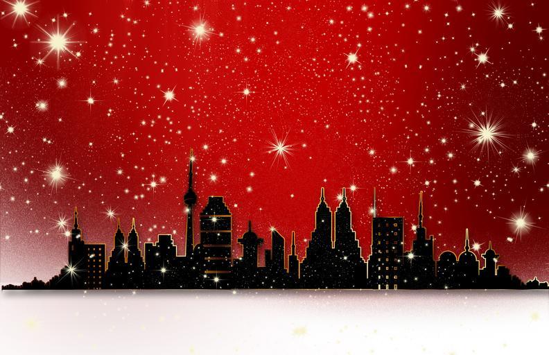 Keywords: city view digital red white snow silhouette christmas star light advent festival atmosphere december winter lighting christmas time