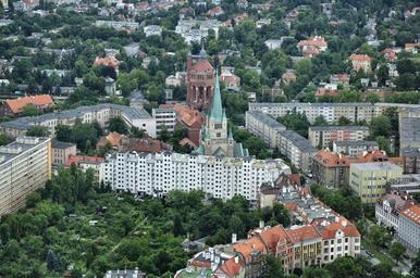 Keywords: city view wrocław buildings architecture panorama of the city the roofs tower street view from above poland church